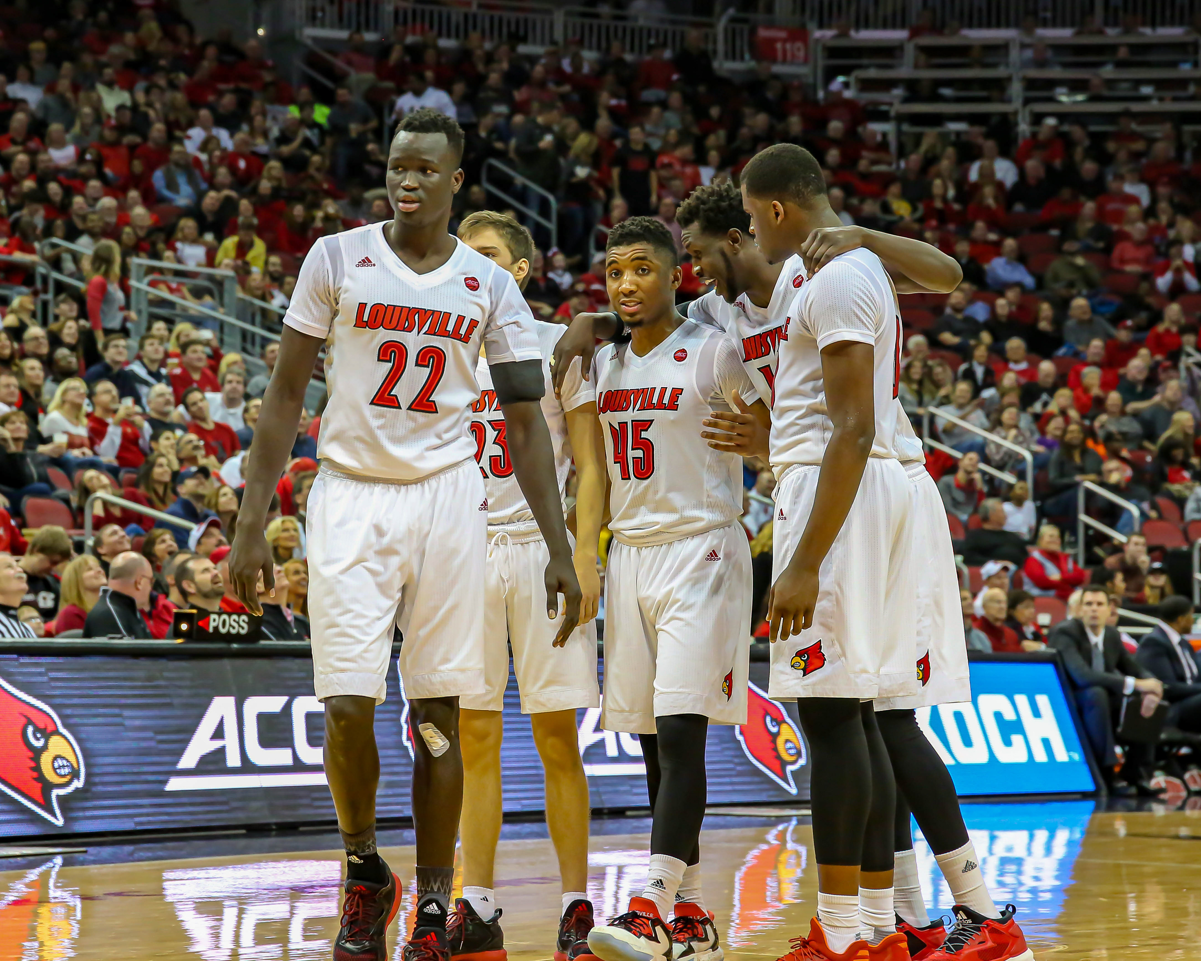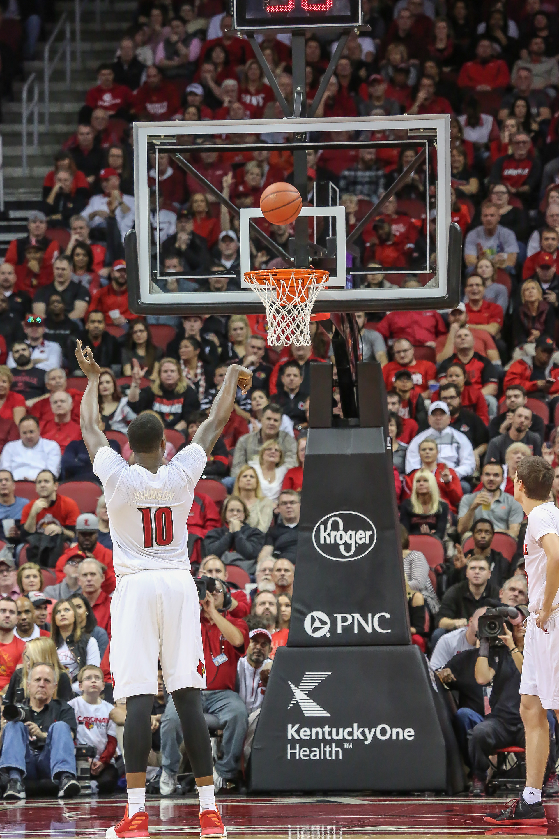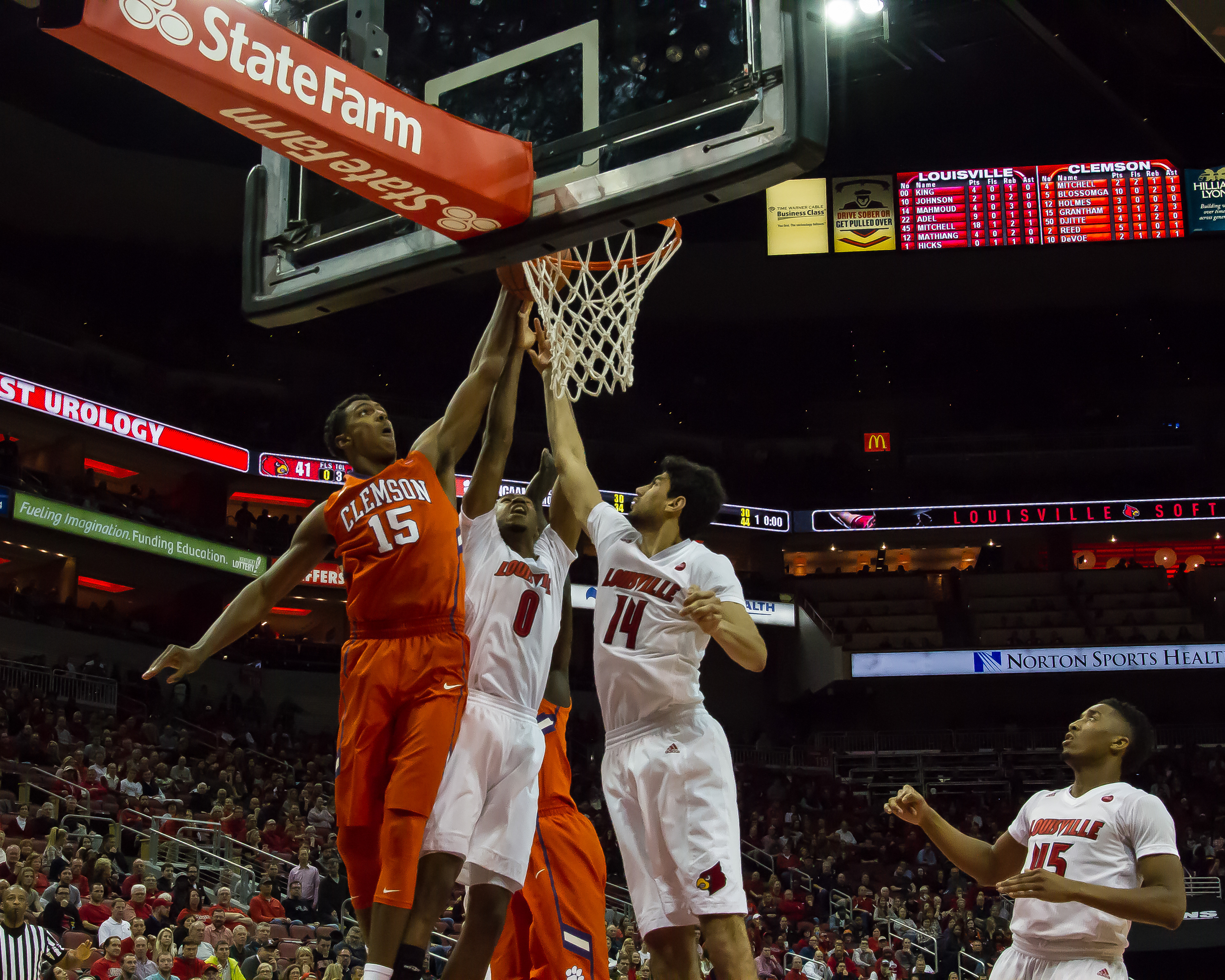 Home game at KFC Yum Center between U of L Cardinals and Clemson Tigers.